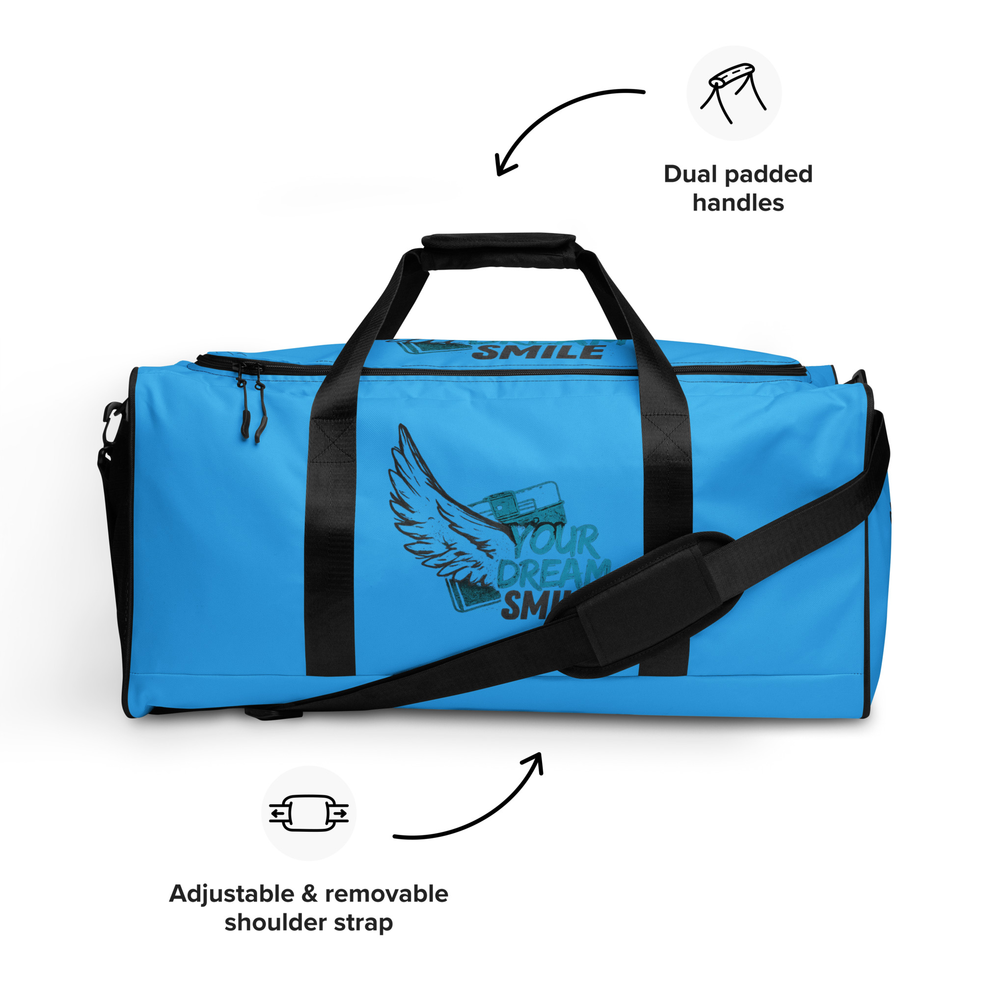 This duffle bag is the perfect companion for every occasion—take it with you when traveling, running daily errands, or going to the gym. The bag is spacious and will keep all your stuff neat and organized with its multiple pockets, including one with a zipper for your most valuable possessions. Adjust the padded shoulder strap when the bag’s helping you carry heavier things, and continue your daily run without a worry!