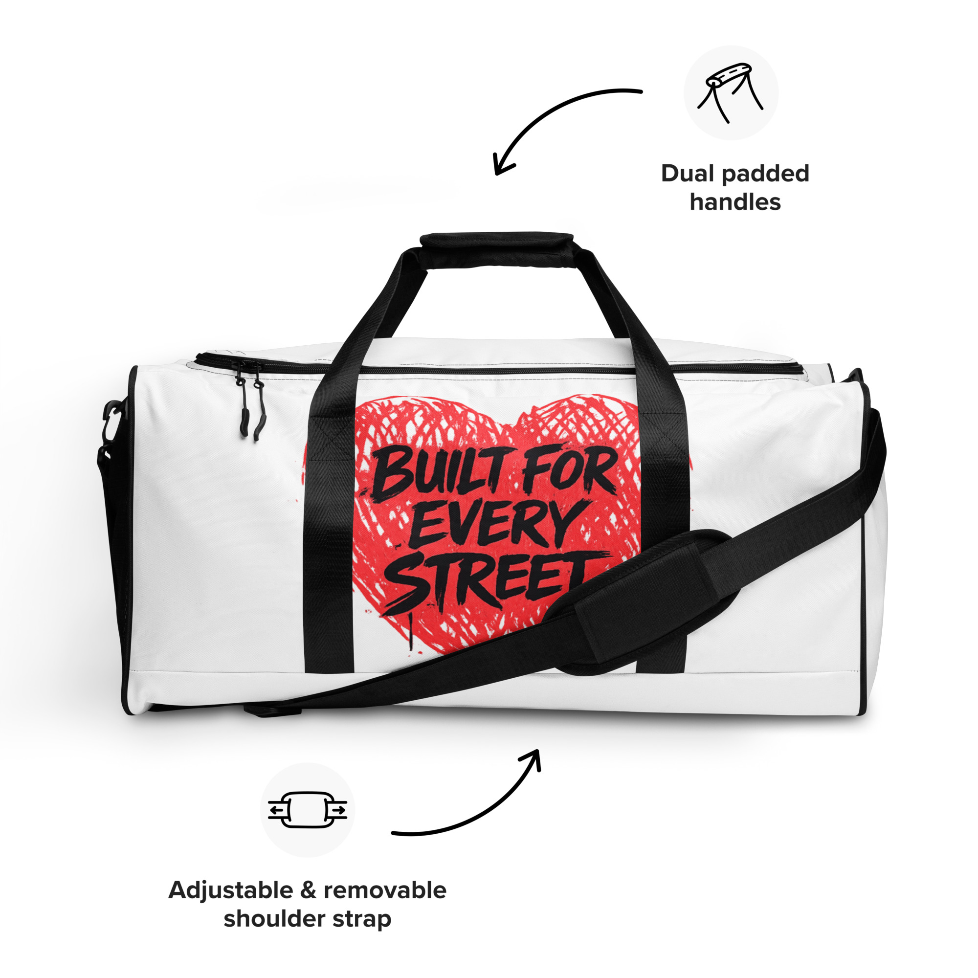 This duffle bag is the perfect companion for every occasion—take it with you when traveling, running daily errands, or going to the gym. The bag is spacious and will keep all your stuff neat and organized with its multiple pockets, including one with a zipper for your most valuable possessions. Adjust the padded shoulder strap when the bag’s helping you carry heavier things, and continue your daily run without a worry!