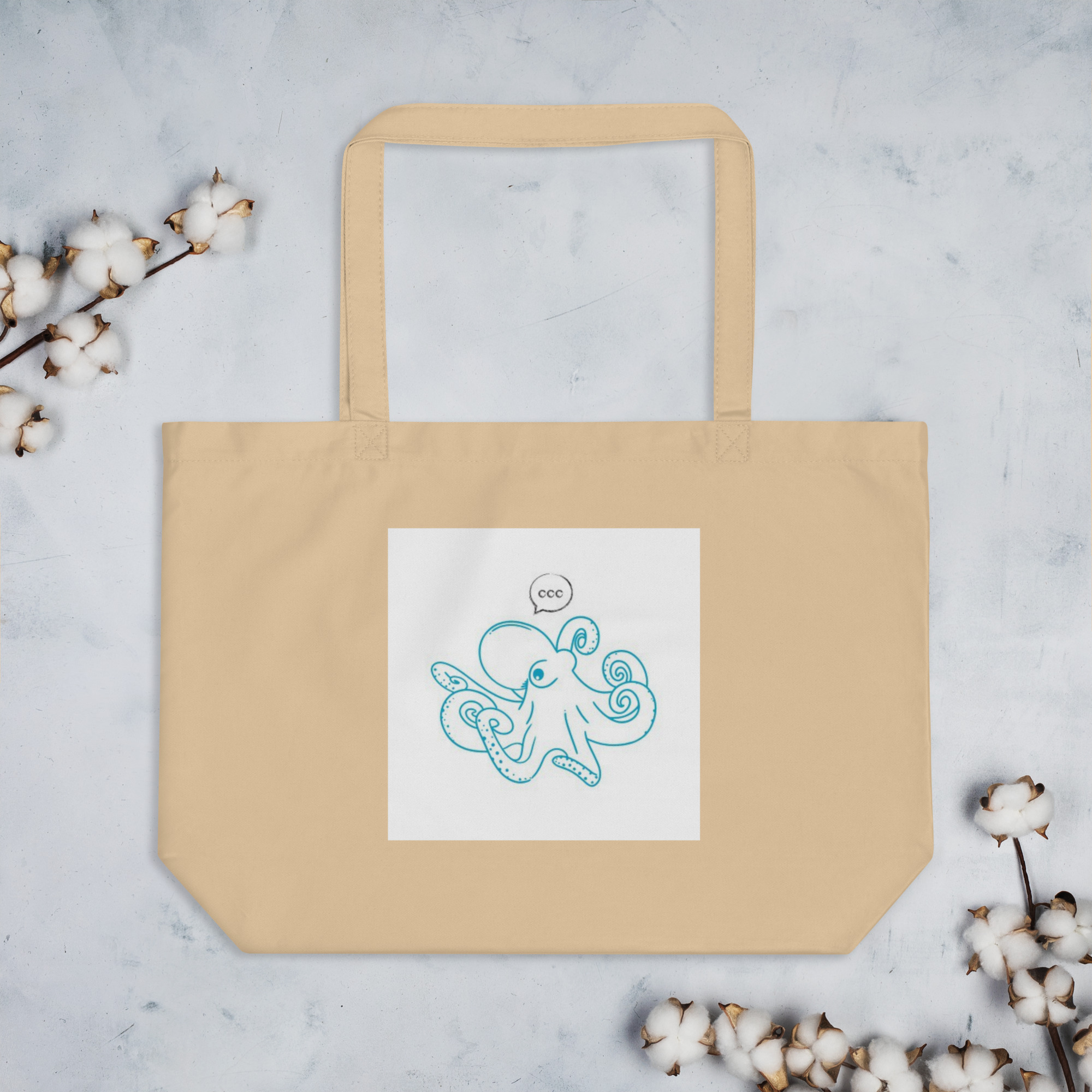 Large organic tote bag “Octopus Wave”
